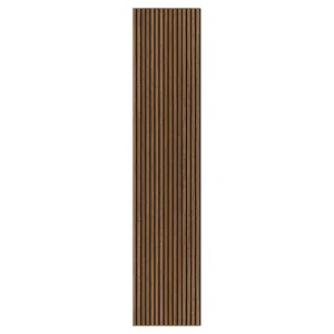 Slat Teak Color Acoustic Sound Panels combine the universally appealing, warm golden-brown hue of teak wood with the functional benefits of linear acoustic design. These panels offer effective sound absorption through a slatted face, reducing noise and echo while bringing the inviting, organic aesthetic of teak into any modern interior.