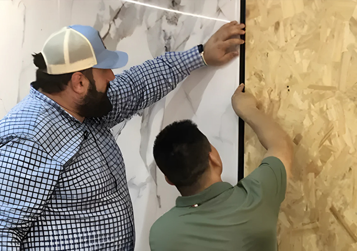 3.Inspection finale : Examiner le placage installé pour vérifier qu'il n'y a pas de lacunes, de bulles ou de bords décollés visibles. Appliquez de l'adhésif supplémentaire si des bords semblent se soulever et assurez-vous que tous les panneaux sont fermement en place.