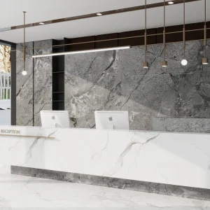 PVC Marble Wall Panels(Also known as PVC/UV marble sheet) is a remarkable decorative material that uniquely blends style, functionality, and durability. Its unique appearance imparts a sophisticated and straightforward aesthetic to interior spaces, making it a popular choice for many wall applications.